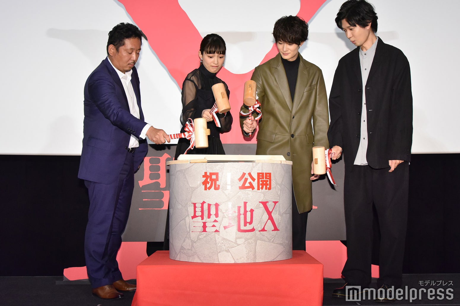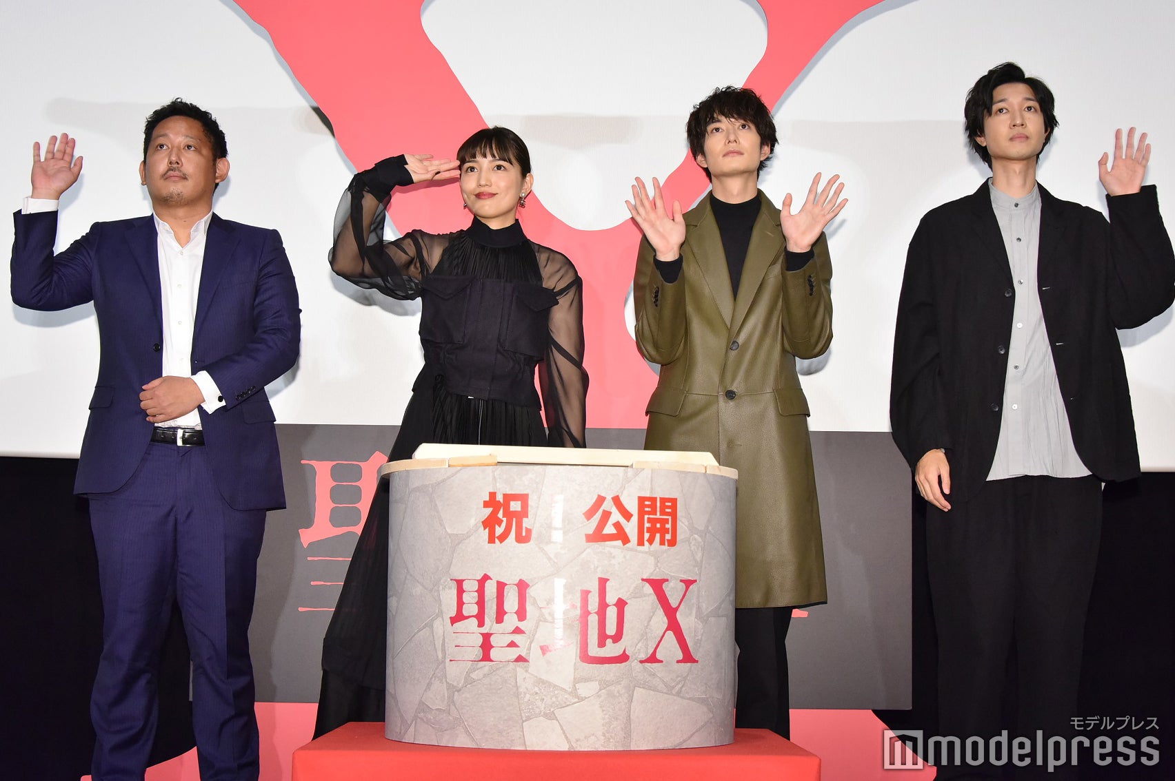 岡田将生と川口春奈が20日、都内で行われた映画『聖地X』の公開記念舞台挨拶に薬丸翔、入江悠監督とともに登壇。撮影時の裏話を明かした。