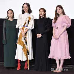フリーアナウンサーで女優の田中みな実と元乃木坂46の松村沙友理が20日、都内で行われた映画「ずっと独身でいるつもり?」の公開記念舞台挨拶に、共演者の市川実和子、徳永えりとともに出席した。
