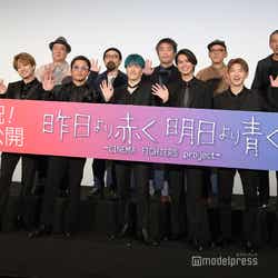 GENERATIONS from EXILE TRIBE(白濱亜嵐、片寄涼太、数原龍友、小森隼、佐野玲於、関口メンディー、中務裕太)が27日、都内で開催された映画 『昨日より赤く明日より青く-CINEMA FIGHTERS project-』公開記念舞台挨拶に出席した。