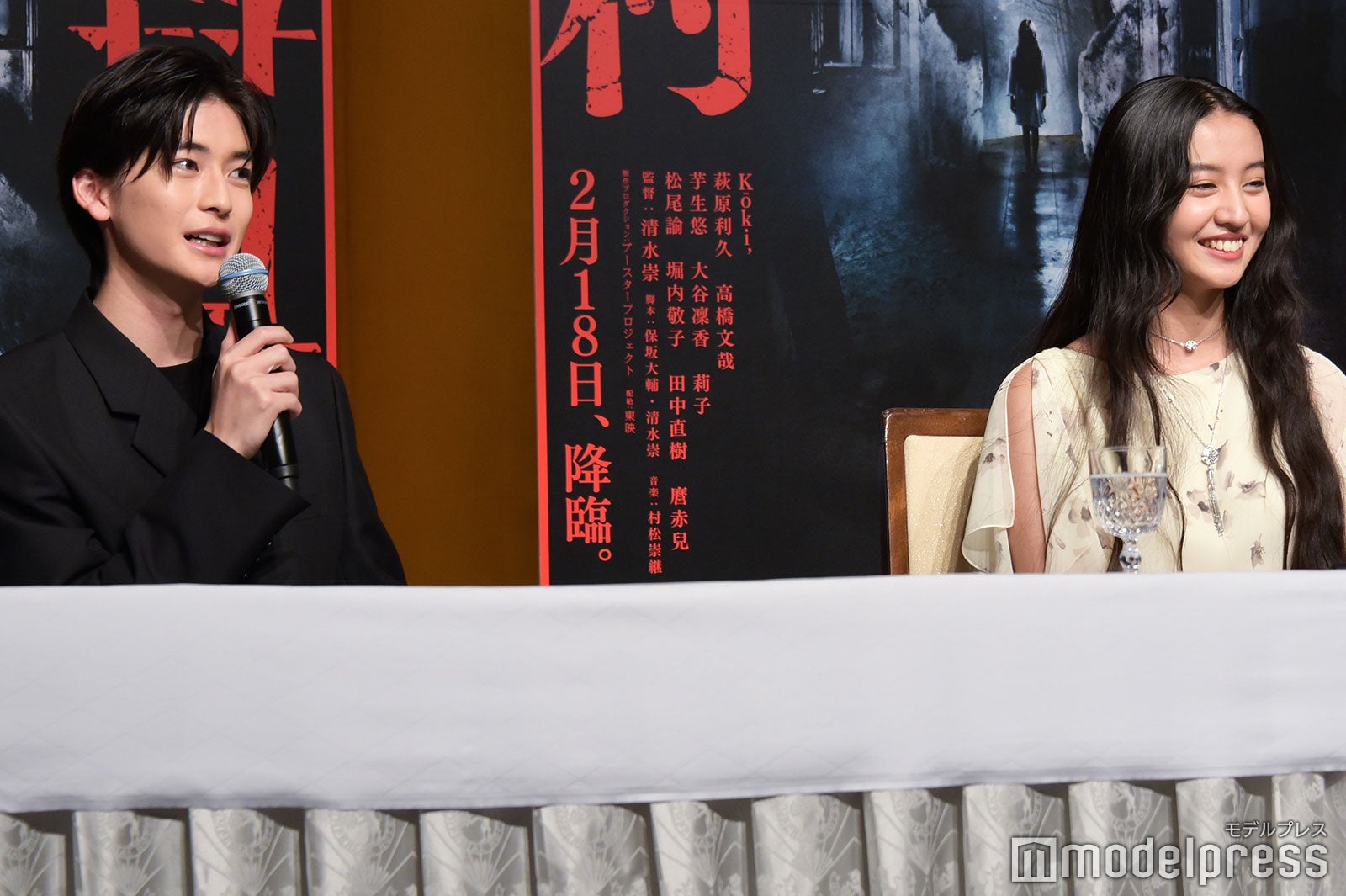 俳優の木村拓哉と歌手の工藤静香夫妻の次女でモデルのKoki,が、都内にて行われた初主演映画「牛首村(うしくびむら)」(2月18日公開)完成報告会に、俳優の萩原利久と高橋文哉、メガホンをとった清水崇監督とともに出席。初演技の感想を語った。