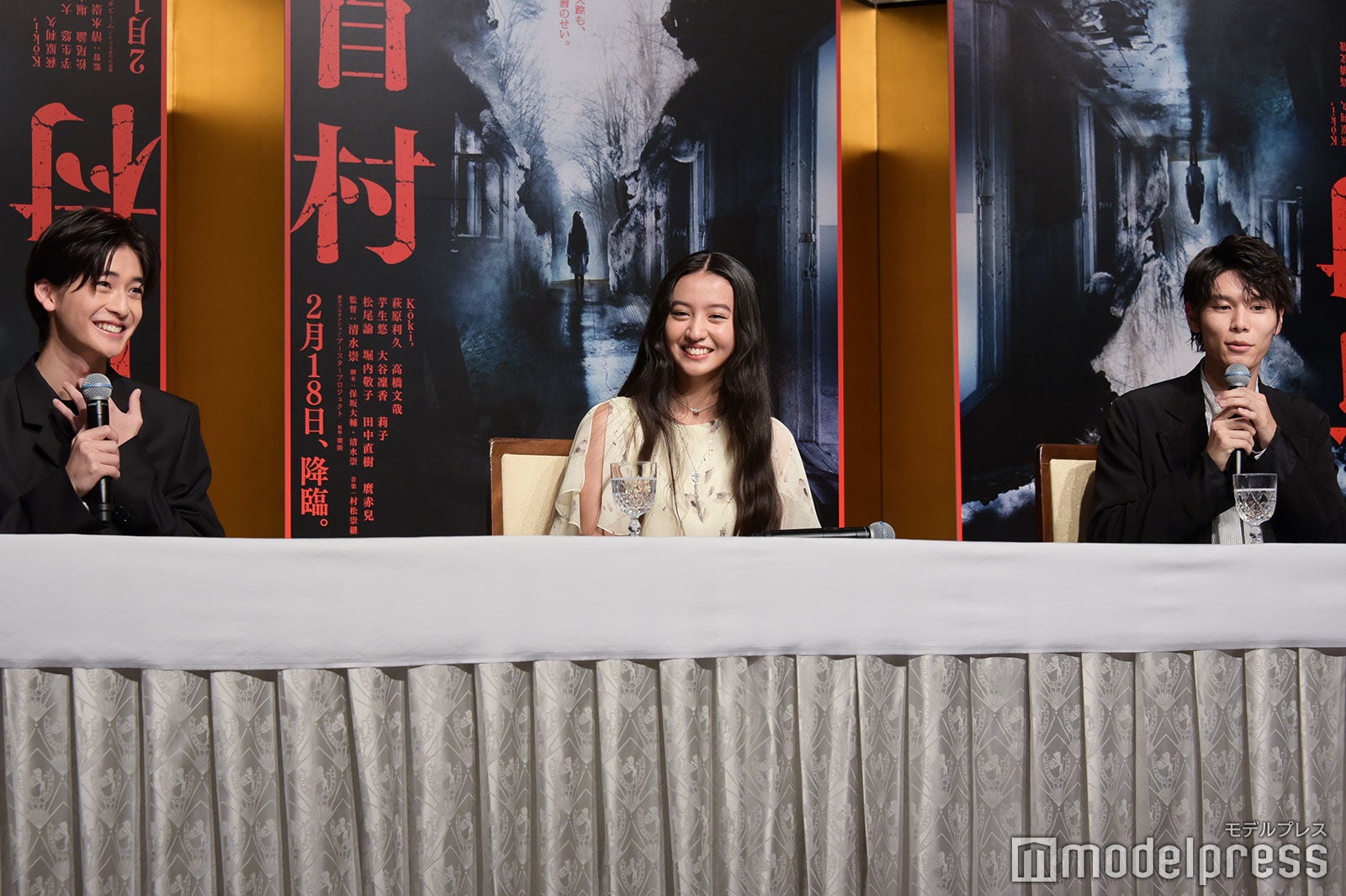 2020年2月に公開され、ヒットを記録した清水監督作品「犬鳴村」、2021年2月に公開された「樹海村」に続く、“恐怖の村”シリーズ第3弾。本作の舞台は北陸地方の最恐スポットで、都市伝説「ウシノクビ」などを盛り込んだストーリーが展開される。17歳の女子高校生・奏音と、その妹・詩音の1人2役を演じるKoki,は、本作で女優デビュー。映画初出演にして初主演といきなり大役を任されたKoki,だったが「ものすごく素敵な経験をしました。毎日学ぶことが多かったです」と感想を述べ「成長したところは、まずは集中力。そして演技に対しての楽しさ、演じる魅力を感じられるようになった」と女優業に手応えを感じていた。
