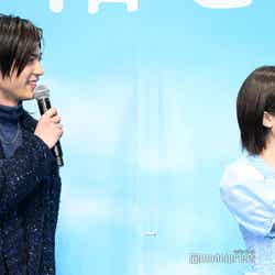 女優の福本莉子とTravis Japan/ジャニーズJr.の松田元太が12日、W主演を務める映画「君が落とした青空」(2022年2月18日公開)“あおキュン”完成報告イベントに登場した。
