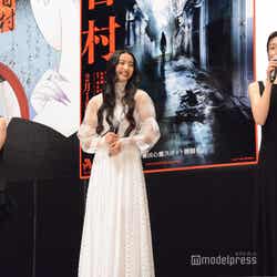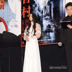 今作は2020年2月に公開され、ヒットを記録した清水監督作品「犬鳴村」、2021年2月に公開された「樹海村」に続く、“恐怖の村”シリーズ第3弾。本作の舞台は北陸地方の最恐スポットで、都市伝説「ウシノクビ」などを盛り込んだストーリーが展開される。イベントには、俳優の高橋文哉、芋生悠、大谷凜香、松尾諭、メガホンをとった清水崇監督も出席した。本作主演で女優デビューし、17歳の女子高校生・奏音と、その妹・詩音の1人2役を演じたKoki,は、「素晴らしいチームの皆さんのおかげもあると思うんですけど、演じることがこんなに楽しいんだ、こんなにも夢中になって好きになれるものなんだと気づかせてくれました」としみじみ。また、「監督からは数えきれないほどのアドバイスをいただきました。ほんの小さな目の動きや唇の動きでも緊張感が途切れてしまうので、気をつけながら演じていました」と振り返ると、清水監督は「最初の頃は芝居が硬かった」「役ではなく、本人のクセが緊張で出てしまう」と新人故の問題点があったことを明かしつつ、「それを伝えるとちゃんと意識がそこに行く」と、すぐに改善できる女優としての素質に感心していた。