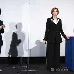 前日28日にメンバーの岸優太が新型コロナウイルスに感染したことが判明。永瀬本人はPCR検査で「陰性」だったものの濃厚接触者に該当する可能性があるとして、登壇予定だった舞台挨拶をリモート出演に切り替えた。会場にある大きなスクリーンに映った永瀬は「めちゃくちゃ元気ですよ!」と体調を報告。「そちらに行って登壇する予定だったのですが今日は行けずにすいませんでした」と謝罪した。永瀬の欠席を受け、池田は「私が少しでもハンサムになろうと頑張ってみました(笑)」とパンツスタイルでの登場となった。