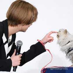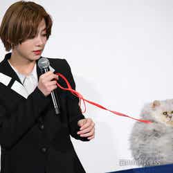 作家Fによる同名小説が原作の同映画は、“平凡で退屈な日々を送る青年が自分自身と東京を破壊するまでの夜と恋と戦争”を描いたストーリー。永瀬は主人公の無気力な大学生“私”、池田は主人公が思いを寄せる凛々しく聡明な“先輩”を演じた。また、会場には劇中に登場する猫のビーツも登場。永瀬は「かわいいビーツ!」と直接会えないことを嘆いた。池田はこの日ビーツに対面するのは初めてだったが、「うちで飼っている猫と人相がちょっと似ている」といい、のどを撫でるなど慣れた様子で交流していた。