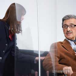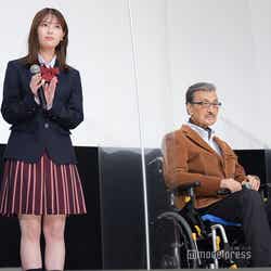 岩本と一緒にダブル主演を務めたのは、今年芸能生活68年となる大ベテラン・宝田。現在87歳で、岩本とは約70歳もの年の差となる。宝田との共演について、岩本は「(緊張で)ガチガチな状態だったけど、宝田さんに会った瞬間に優しい方だと思った。楽しんでできた。いい思い出がたくさんある」と振り返った。腰痛の治療のため、この日は車いすで登壇した宝田。マイクを持つと「こんな年の差の共演は初めて。胸騒ぎしたけど、セットに入ったら『なんて度胸のある子なんだ』と思った。映画初めてとなれば、おどおどするもの。でも、そんなこと決してなかった。リハーサルはもちろん本番でもNGを出さなかった。大変な小娘でございます」と岩本を褒めちぎる。さらに「大女優の片鱗がある。これは大女優になると感心してみていました。将来、立派な女優さんになる」と太鼓判を押した。