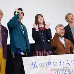 乃木坂46の岩本蓮加が10日、都内で行われた映画「世の中にたえて桜のなかりせば」(4月1日公開)完成披露舞台挨拶に宝田明、主題歌を担当した男性デュオ・all at once(ITSUKI、NARITO)、メガホンをとった三宅伸行監督とともに出席した。