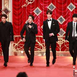 新人俳優賞を受賞した4人。それぞれブラックのスーツに身をつつみ、重厚な面持ちでレッドカーペットを闊歩した。