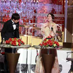 前年の日本アカデミー賞にて「MOTHER マザー」で最優秀主演女優賞を受賞した長澤は今回が初の司会。花の模様が施された美しいシアードレスで登場し、華やかな雰囲気を振りまいた。
