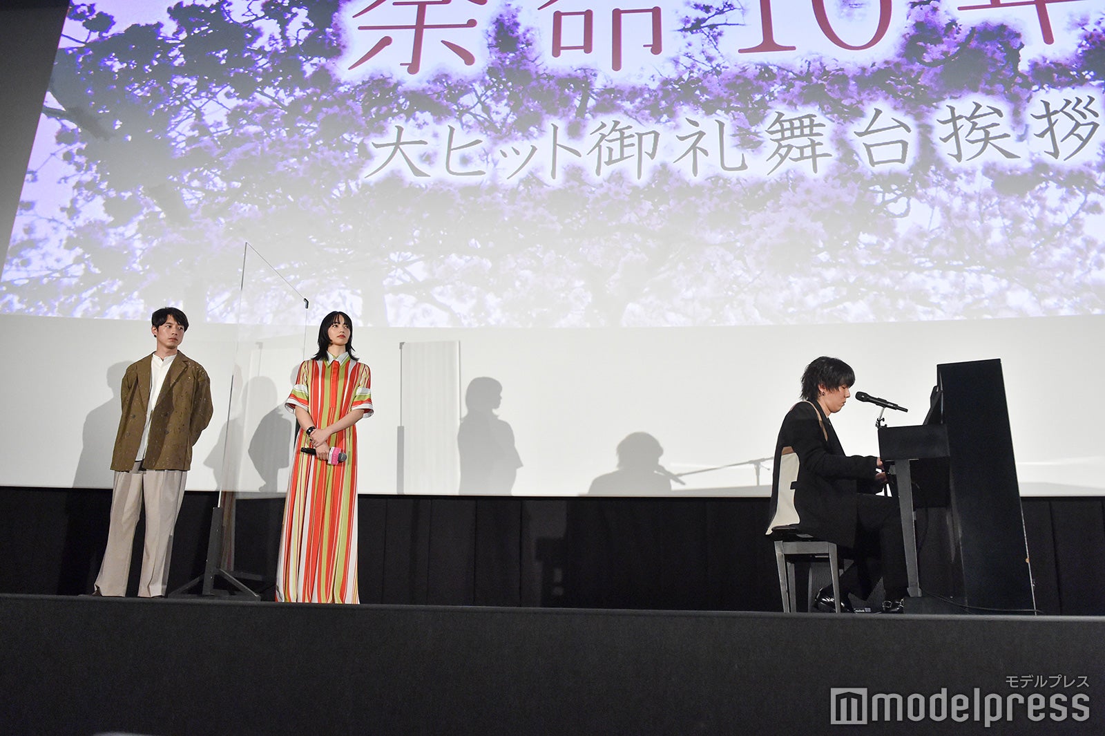 そして、野田が楽曲を披露し終えると、小松は「凄すぎます!言葉で言い表せないというか。超贅沢な時間だなと噛み締めちゃいました。感情を優しくえぐってくる感じとか、こんな素晴らしい曲でこの映画に命を吹き込んでくれて本当にありがとうございます」と野田に頭を下げ、坂口は「もうなんか…うーん、ねぇ。これが感想ですね」と感無量な表情を浮かべた。改めて、披露した感想を求められた野田は「手が震えましたね。(同曲を)人の前で歌うのは初めてだったので、2人の前で、そして(映画を)観てくださったみなさまの前で初めて演奏できてすごく幸せでした、ありがとうございました」と笑顔を見せ、観客から大きな拍手を浴びた。(modelpress編集部)