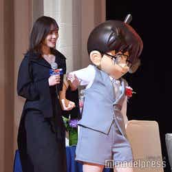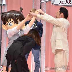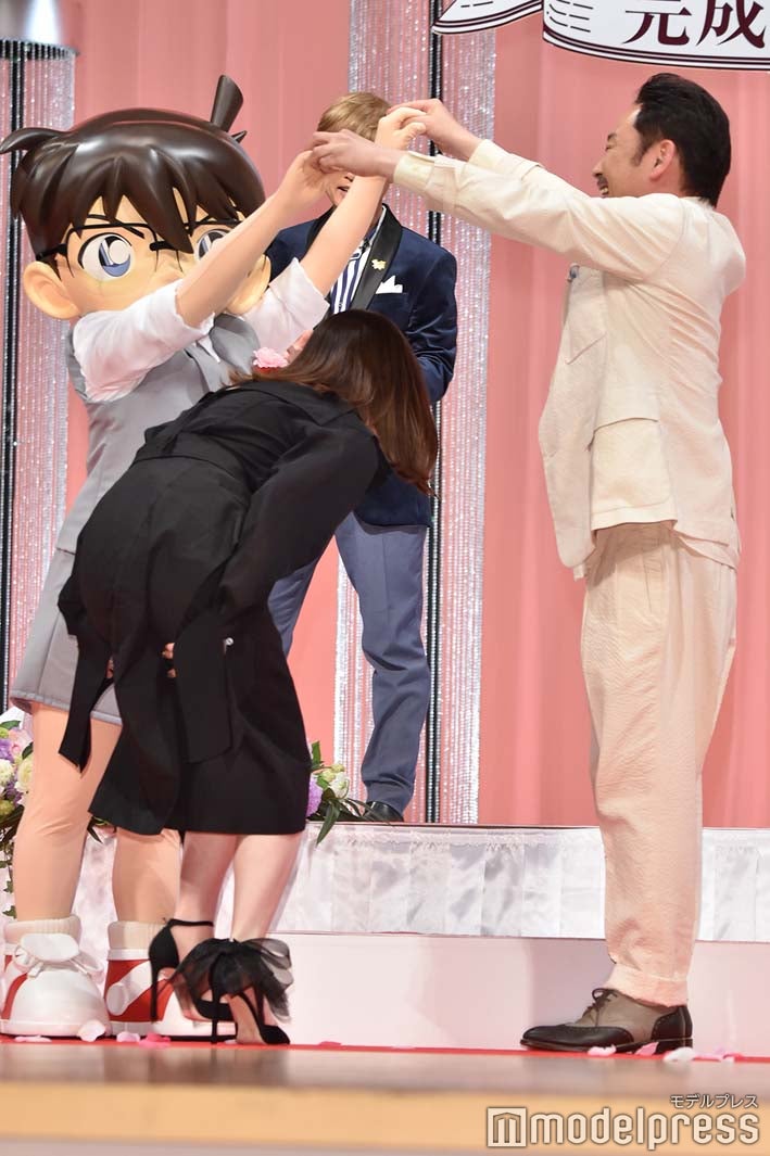 女優の白石麻衣が5日、都内で行われた人気アニメ『名探偵コナン』の劇場版第25弾『名探偵コナン ハロウィンの花嫁』(4月15日公開)の完成“披露宴”舞台挨拶に、声優の高山みなみ、山崎和佳奈、古谷徹、高木渉とともに登壇。声優陣から絶賛される場面があった。