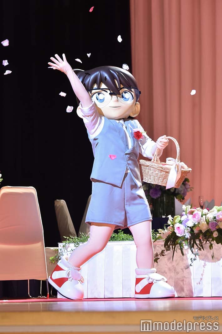 タイトルにちなみ、“披露宴会場”を模したステージに正装して登場した面々。エレニカ役の声優を務めた白石は、レジェンド声優陣と並んだ心境を尋ねられると「本当に夢を見ているような気分ですし、私も小さい頃からコナンを観て過ごしてきたので、まさか自分がこうやって声優をやらせていただける日が来るなんてって思ったら、今日は大事な日になりましたね」とうっとりとした表情を浮かべた。またコナンの世界に飛び込んでみての感想を求められると「コナンくんをはじめ、1人1人のキャラクターがすごく素敵なんだなということを改めて感じましたし、今回の映画に参加させていただいて、素晴らしいお話になっていますし、みなさんの元に届く日が来るといいなと楽しみにしてきたので、今日は楽しんでもらえたらなという気持ちでいっぱいです」と目を輝かせた。