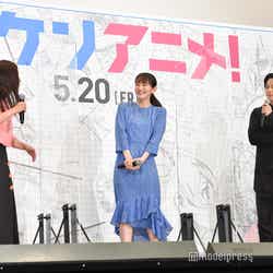 一世一代の大チャンスを掴んだ新人アニメ監督・斎藤瞳を演じた吉岡は、ステージに登壇して会場いっぱいに詰めかけた観客を目にすると「こんなに人が多いと思っていなかったので、めちゃくちゃ嬉しいです」と声を弾ませ、「自信作です!シンプルに。『ハケンアニメ!』をやっと見ていただけるのがとても嬉しいですし、必ずみなさんにちゃんと刺さるんじゃないかと丁寧に撮ってきました」と胸を張った。自身が演じた役と共感するところを聞かれると、吉岡は「私が演じた斎藤瞳は、自分の中では熱い思いがあって、“こんな作品が作りたい”という思いがあるんですけど、うまく伝えられないというところが同世代なのでわかるなと思います。もっともっと燃えているんだけど冷めて見られるとか、ちょっとわかるなと思います」と答え、吉岡の回答に共感できるか尋ねられた中村は「ごめんなさい、今、自分が何を答えようか考えていて…」と話を聞いていなかったことを明かして笑いを誘い、吉岡が「全然聞いてない」と怒ると、中村は「この透明なもの(アクリル)があるからかな」と誤魔化した。