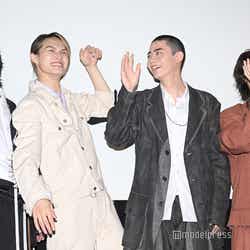 本作は、主人公の今西大輝(豊田)など無軌道な不良少年たちが織りなす青春を描く。この日は共演した大倉空人、兵頭功海、松尾潤、そして山嵜晋平監督も出席していた。主演の豊田は本作への出演について「びっくりしたっていうのが一番強かったですね。映画も初めてだったので、どうやって演じようっていうのが一番最初で」とコメント。役作りに関しては「めちゃくちゃ強い役だったので、僕は別に強くないしなあと思いながら。でも、強い人ってどういう仕草で、どういう目つきで人を殴ったりするんだろうとか、そういうところから始めて。大輝がああいう風に育っていった年表みたいなものを自分の中で作って。あとはやっぱり空人とか、キャストのみんなと話しながら、一緒に共有して作っていきました」と振り返った。