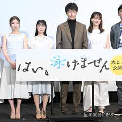 女優の綾瀬はるか、俳優の長谷川博己、アーティストのLittle Glee Monster(かれん、MAYU、アサヒ)が25日、都内で開催された映画「はい、泳げません」公開記念舞台挨拶に登壇。Little Glee Monsterが歌を披露する場面があった。