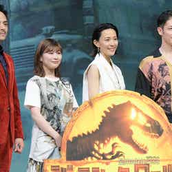 女優の伊藤沙莉と俳優の満島真之介が13日、都内で行われた映画「ジュラシック・ワールド/新たなる支配者」緊急シンポジウムに、日本語吹き替えを担当した玉木宏、木村佳乃と登場。伊藤が満島のトラウマを掘り返す場面があった。
