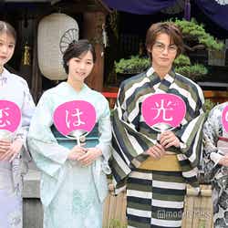 本作は“恋をしている女性が光を放ってキラキラして視える”という特異な体質を持つ男子大学生・西条(神尾楓珠)と、西条にずっと片想いをしながらも「光っていない」と言われてしまう幼なじみの北代(西野)、“恋を探究する女”東雲(平祐奈)、“略奪する女”宿木(馬場ふみか)が織りなす恋模様を描く。この日は主演を務める神尾、共演の平と馬場も出席し、一同は浴衣姿で会場を彩った。