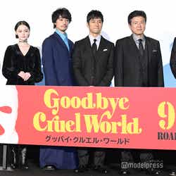 俳優の西島秀俊と斎藤工が7日、都内で開催された映画『グッバイ・クルエル・ワールド』(9月9日公開)完成披露イベントに、共演の宮沢氷魚、玉城ティナ、三浦友和、大森立嗣監督とともに出席した。