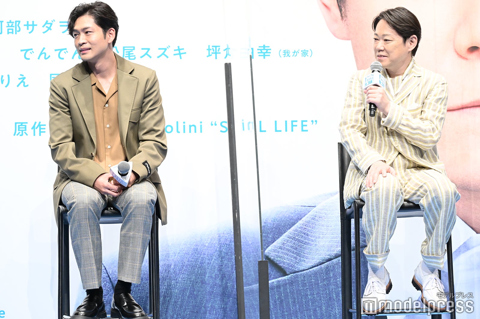 本作は、“おみおくり係(=お一人で亡くなった方を埋葬する)”として小さな市役所で働いている、ちょっと頑固で迷惑な存在の牧本(阿部サダヲ)が、周囲の人々と織りなす人間模様を描く。この日は阿部、宇崎竜童、水田伸生監督も出席していた。ルールを守らない牧本に翻弄され毎度説教を浴びせる刑事・神代亨を演じる松下だが、牧本にちなみ「迷惑をかけているとわかりつつ日頃やめられないこと」を聞かれると「僕もそうしたくてしているわけではないんですけど、今回の現場でも一度やらかしてしまったことがあって」と前置きし、キャストやスタッフが移動している中、自分だけが現場に残ってしまったことを回想。