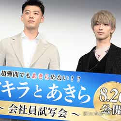 俳優の竹内涼真と横浜流星が18日、都内で開催されたW主演を務める映画『アキラとあきら』(8月26日公開)公開直前イベント「超難問でもあきらめない!?『アキラとあきら』~会社員試写会~」に出席した。