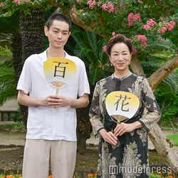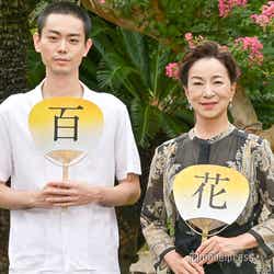 浅草寺のヒット祈願の後、国の重要文化財である伝法院にてトークを行った。祈願について菅田は「すんごい気持ち良かったです。音とか隙間風の気持ちよさもあるけど、じっと目を閉じて聞いていると、スッと溶けていくような感じ。ヒット祈願ってこっちも気が張るし疲れるんですよ。でも今日は全然疲れなかった。むしろ癒やされた」と清々しい表情で語った。「告白」「君の名は。」「悪人」など多数の映画制作に関わってきた川村元気氏による小説「百花」を映像化。川村氏が監督・脚本を担当しており、菅田と原田がダブル主演を務める。記憶を失っていく母と向き合うことで、母との思い出を蘇らせていく息子・葛西泉を演じるのは菅田。すべてを忘れていくなか、さまざまな時代の記憶を交錯させていく母・葛西百合子を原田が演じた。