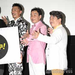 また寺門は酒井も見どころに挙げ「3か所くらい、映画なのにカメラ目線があります!監督は演出の時に悩んだと思います。この監督は使うか使わないか悩んだと思います」とコメント。酒井は「芸歴40年のこの俺がカメラ見るなんてのはないですよ!」と笑い、寺門は「いや!チェックしてください。2~3箇所ありました。無意識です。カメラが好きなんですよ」と主張していた。