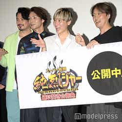 本作は、ムード歌謡グループ・純烈が、皆の憩いの場である温泉施設を守るヒーロー・純烈ジャーとして、温泉の平和を乱す悪と戦う姿を描く。この日は本作に出演している本宮泰風、佛田洋監督も出席していた。