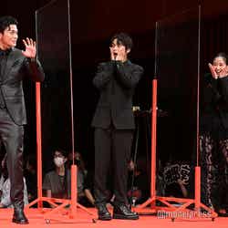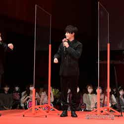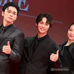 明日香の幼馴染でクラスの人気者・伊勢高広に扮した眞栄田は「思ったより距離が近くて、めっちゃ緊張します」と照れ笑いを見せ、強気な性格の柊留美子を演じる山本は「こうして6人で揃って、あと監督と一緒に舞台挨拶できてうれしいです」と再集合に喜びのコメント。