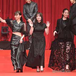 Z世代のバイブル的ホラー「カラダ探し」を実写化した本作は、抗うすべなく“赤い人”へと立ち向かう毎日をループする6人の高校生の姿を描く。この日、一同は劇中で6人を追い続ける恐怖の存在“赤い人”にちなんだレッドステージのランウェイを闊歩した。(modelpress編集部)