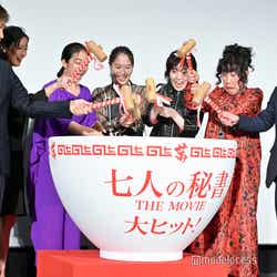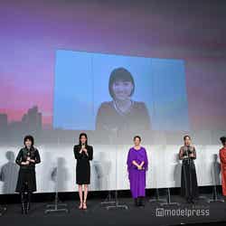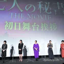 映画「七人の秘書 THE MOVIE」初日舞台挨拶が7日、都内の劇場で行われ、大島優子がリモートで登壇。ほか、木村文乃、広瀬アリス、菜々緒、シム・ウンギョン、室井滋、江口洋介、田村直己監督がオフラインで参加した。