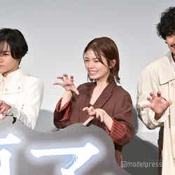この日はまもなくハロウィンとあって、それぞれが映画で演じたキャラクターをイメージした服装で登場。IQ200という設定だった小芝は「賢そうに見える服」というオーダーがあり、「劇中の衣装とは雰囲気違うんですがジャケットを着てきました」とにっこり。IQ200の人物を演じる小芝は、劇中で“耳の裏を押すようなポーズ”をしているが、「現場に監督で急に言われた。ここ(耳の裏の)ツボを押すと血流がよくなって色んな出来事を思い出すって。(このポーズのおかげで)」といい、そのポーズを自分自身で確認すると「“何やってるんだろう?って(笑)。映画の後半、王司に『なにそれ?』と言われるシーンがあるんですが、そのセリフに救われました。自分もそう思っていたので(笑)」と苦笑した。