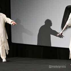 舞台挨拶の後半、貞子からキャスト陣に向けて感謝の言葉が伝えられた。気持ちが綴られた手紙はなんと3メートルにおよぶ長文で、一人ひとりに向けられていた。貞子から「一緒に過ごした日々は私にとって宝物です。これからも益々ご活躍される風ちゃんを、貞子はずっとずっとずーっと見つめています」という言葉を受け取った小芝は「貞ちゃんは女優魂がすごくて。色々一緒にやったけど同じ女優として尊敬する」とほほ笑み。