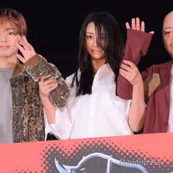 法外な金利で金貸しをする闇金融業者と債務者たちの人間模様や社会の闇を描いた人気漫画「闇金ウシジマくん」。山田孝之主演の実写シリーズでは、丑嶋(山田)のライバルとしてしか描かれてこなかった女闇金・犀原茜(高橋)だが、本作では女性でありながら非合法な金貸しとして生きる彼女がアウトローゆえにヤクザたちにつけこまれ、理不尽な要求を受けながらも裏社会で生き抜く様が描かれる。この日は、共演の宮世琉弥、古畑星夏、崎本大海、やべきょうすけ、マキタスポーツのほか、“クズ芸人”ゲストの空気階段・鈴木もぐら、9番街レトロ・なかむら☆しゅん、プリズンクイズチャンネル・庄田健裕、ウエスタンズ・荒井卓哉も登場した。
