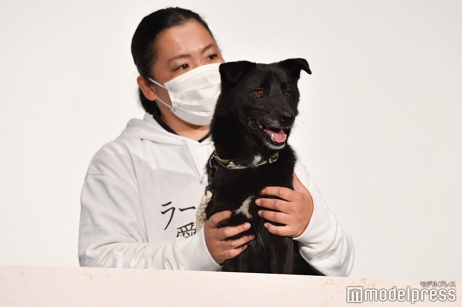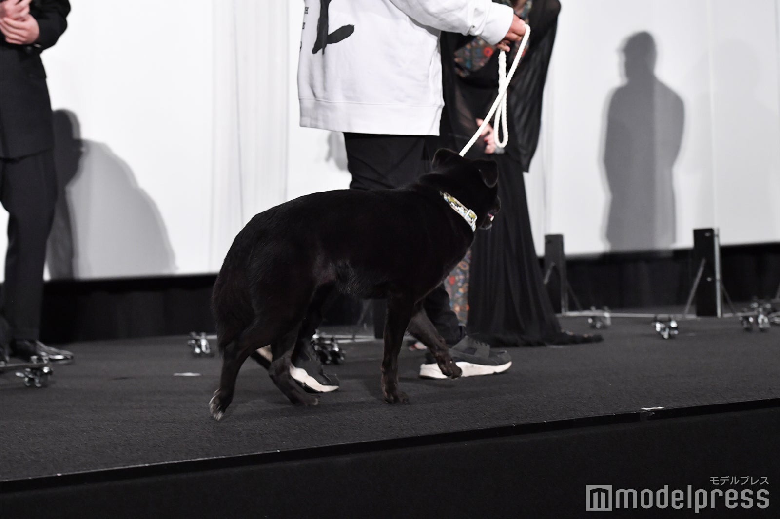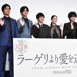 舞台挨拶では、本編で抑留者たちと生活を共にしていた黒毛の犬・クロ(本名・大吉)が登場し、“ラーゲリファミリー”が結集。足が不自由だが心優しき青年・新谷健雄を演じた中島の相棒的存在でもあるが、「クロ!」と嬉しそうな中島に呼ばれると、観客に背を向けてずっと中島を見つめるクロ。二宮は思わず、松坂らと顔を合わせながら、「ずっと見ていられる、仲良しだぁ」と微笑んでいた。