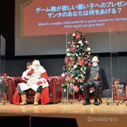 ブラックサンタを演じた吉沢たちはこの日、サンタの極意を直接伝授。サンタクロース財団公認の“本物のサンタ”をフィンランドのサンタクロース村があるロヴァ二エミ市から招き、審査員に迎え、誰が一番“赤いサンタ”の資質を持っているのか、本編さながらの5本勝負を繰り広げた。まず「もし悪い子がゲーム機が欲しいとお願いしたら、どんなプレゼントをあげますか?」という質問に対し吉沢は「親御さんと連携して1日ずらします。24時間遅らせて26日の朝にプレゼントを置きます。子供はその日に来ないので、『なんで来ないのか』ってなったら、親御さんにこの子の直すところを言っていただき、1日いい子に過ごしたら、プレゼントをあげる」と回答。