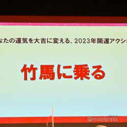 同イベントでは、来年の運勢占いが行われる一幕もあり、“凶”という結果になってしまった安田は「人生楽しむのが1番って確かに思っていますね。でも凶というのは悲しい結果ですから、ポジティブに考えて凶が1番最強だなということにしておきますわ」と前を向き、そんな結果を大吉に変える開運アクションとして“竹馬に乗る”が提示されると「やりやすいやん!インターネットで竹馬買いますわ」とにっこり。これに、結果は末吉だったにも関わらず、開運アクションが“各駅停車で47都道府県をめぐる”という難題だった中井は「これ絶対おかしいって!47都道府県を各駅停車でめぐれっていうのと竹馬に乗るって…。これだったら47都道府県を竹馬で歩けってほうが凶でしょ」と声を荒らげて会場の笑いを誘った。(modelpress編集部)