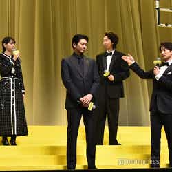 竹野内とのエピソードとして「車で移動したときに一人だけ立っていて。僕と(斎藤)工は座ってたんですけど(笑)。ドアも開けて待っててくれたりして、もう勝てないですよ。ずるいなって思いながら見ています」と尊敬の眼差し。座長が立っている中で座りづらくないか問われると「最初に(斎藤が)座っちゃったんで、僕も座ってました!」と笑顔で明かし、会場を笑わせた。