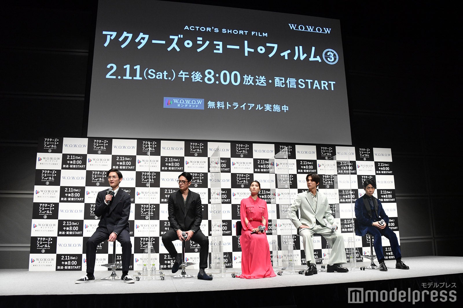 俳優の高良健吾と玉木宏が7日、都内で行われたWOWOWのプロジェクト『アクターズ・ショート・フィルム3』(11日よる8時~WOWOWで放送・配信)完成報告会に、同じくショートフィルムの監督に挑戦した土屋太鳳、中川大志、野村萬斎とともに出席。高良の“意味深発言”に玉木がツッコむ場面があった。