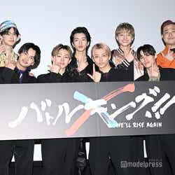 6人組男性グループ・ONE N' ONLY(ワンエンオンリー/EIKU、TETTA、REI、HAYATO、KENSHIN、NAOYA)、10人組ダンス&ボーカルグループ・BUDDiiS(バディーズ)のFUMINORI(小川史記)、FUMIYA(高尾楓弥)、SHOOT(森愁斗)が11日、都内で開催された映画『バトルキング!!-Weʼll rise again-』公開記念舞台挨拶に出席した。この日は瀧川元気監督も出席していた。