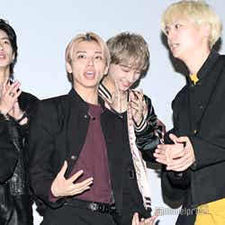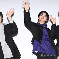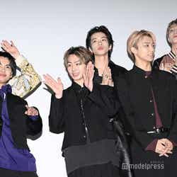 早乙女以蔵に扮したREIは「自分たちの性格というか、本質に近い役柄で演じさせてもらったんですけど、なかなかナチュラルに演じるっていうのは、緊張感とかあるとできなかったりするんですけど」「メンバーで演じることによって、ちょっと本当の自分たちを少し出しつつ、それがすごくいい雰囲気になっている映画だと思いますので、皆さんぜひそこにご注目ください」とアピール。