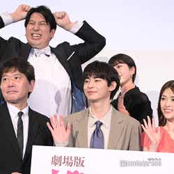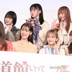 本作は、平尾アウリによる累計100万部超えの大ヒットコミック「推しが武道館いってくれたら死ぬ」を映像化したドラマの映画版。フリーターのえりぴよ(松村)が、地元・岡山のマイナー地下アイドル・ChamJam(チャムジャム)のメンバー・舞菜(伊礼姫奈)に人生のすべてを捧げる姿を描く。この日は共演した伊礼、中村里帆、MOMO(@onefive)、KANO(@onefive)、SOYO(@onefive)、GUMI(@onefive)、和田美羽、豊田裕大、ジャンボたかお(レインボー)、大谷健太郎監督も出席していた。
