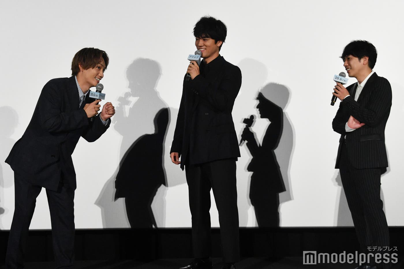 藤原演じる島田は明るく陽気なムードメーカー的存在であり、二宮演じる悟のことをすごく尊敬しているのが伝わる可愛い後輩キャラ役。先輩にあたる二宮と作品で共演するのは本作が初となった藤原は「緊張していたんですけど、二宮くんは後輩とたくさん共演されているので、距離の縮め方が上手い方だなと思いました」と振り返り、「撮影が終わった後も『今日ありがとね、明日もよろしく!』と言いに来てくださって、うわ、優しい~と思って、その後帰ろうと思ったら両足の靴紐が結ばれてて、それを見に来てたんです(笑)。パッと見たら『お疲れ~い!』って」と二宮がニヤリと笑いながらその一部始終を見て帰っていったというイタズラを暴露。二宮が「そんなわけないじゃん」と一蹴すると、桐谷も「犯人は間違いなく?」と確認。藤原は「二宮くんと僕しかいないシーンだったんで!絶対に二宮くんなんです」と二宮の“犯人説”を信じて疑わず。「俺じゃないよ」としらを切る二宮に、「怖いです」と藤原が返せば、二宮も「俺も怖いよ」とラリーが続き、桐谷は「自分がやってるのに忘れてんちゃう…?」と藤原自身の仕業ではないかと言い出した。