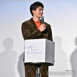 俳優の水上恒司が5日、都内で行われた映画「あの花が咲く丘で、君とまた出会えたら。」祝大ヒット!追い花御礼舞台挨拶に共演の福原遥、伊藤健太郎、出口夏希とともに出席。観客の安全を願い警鐘を鳴らす場面があった。