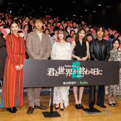 俳優の竹内涼真、女優の中条あやみが9日、都内で開催されたHuluオリジナル「君と世界が終わる日に」配信記念イベントに、玉城ティナ、飯豊まりえ、横溝菜帆、溝端淳平とともに出席。竹内と中条がサプライズ登壇した。