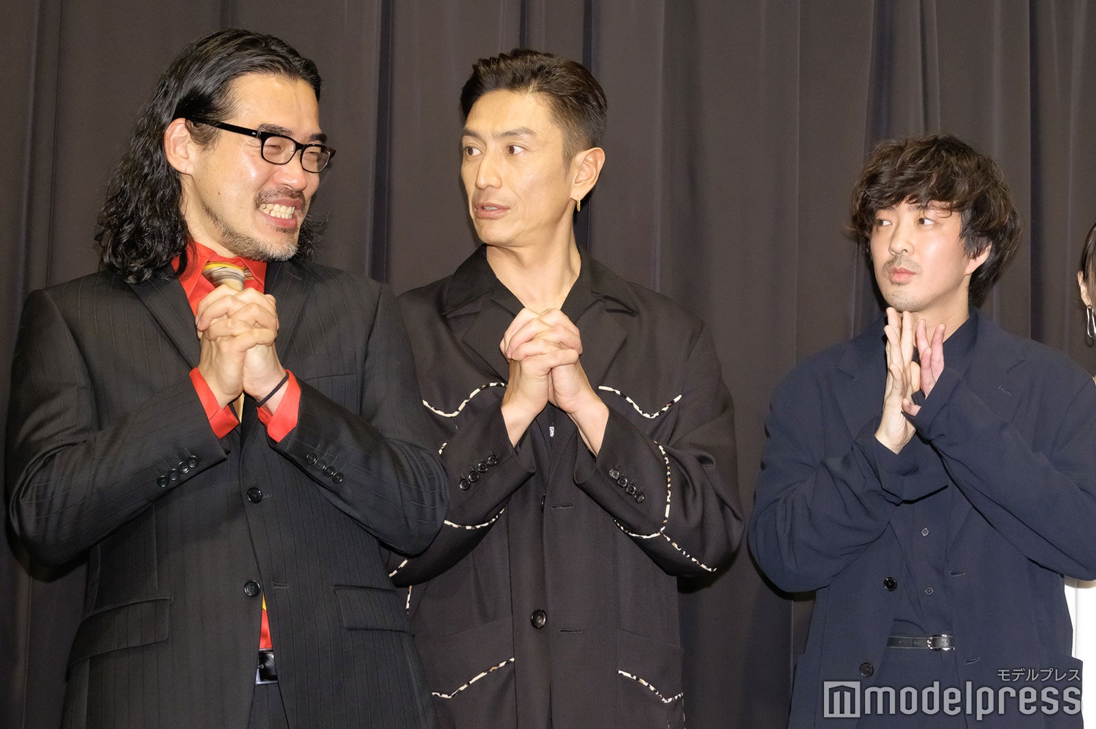 2020年に大麻取締法違反(所持)の罪で有罪判決を受け、本作で俳優復帰となる伊勢谷は、冒頭に司会から紹介されると「なんて言うんでしょう、大変ご無沙汰しております。今日は皆さんとお会いできて嬉しく思っております」と挨拶。溝口役での出演が決まった時の心境を聞かれると「どうだったんですかね。なんか『ここでも俺、罰せられるんだな』と思った」と答えた。そして「だから(劇中で)10回殺されるのは仕方ないなと思ったんですけど、途中でやっぱり嫌になりましたね」と冗談混じりに言いつつ、「ただ、罰せられて人がリカバリーして良くなるかって、あんまりないんですって。社会的に」とコメントすると、荒木監督は「なんの話です?」と笑いながら困惑。若葉が「なんかあったんですか?」ととぼけると、伊勢谷は「僕が何かあったか?」と聞き返していた。