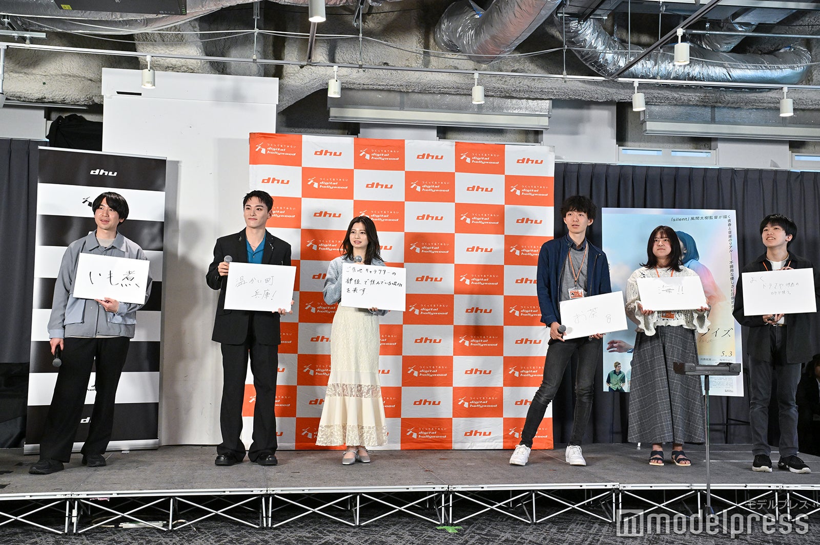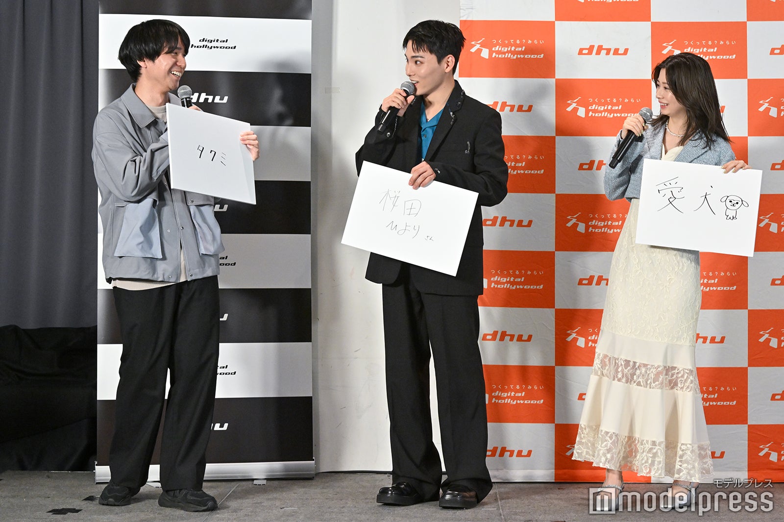 同イベントでは、映画業界を目指す学生も多い同大学の新入生に向けて行われ、まず風間監督が1人で登壇し、MCとのトークセッションや学生とのQ&Aを行い、その後、サプライズで川西と桜田が登場すると、学生からは驚きの声と歓声が沸き起こった。イベントでは、共演者らと仲を深める目的で桜田が考案した「どきどきクイズ」(せーので答えを言うゲーム)をアレンジした「ドキドキクエスチョン」を学生3人を加えて行う一幕も。「“推し”と言えば?」との質問に、桜田は“愛犬”と答え「プードルなんですけど、推しと言えば愛犬のアルク。とってもかわいくて、いつもお仕事から帰ってくると駆け寄ってきてくれて、それが毎日の癒しになっているので、私は愛犬が推しです」と目を細めた。