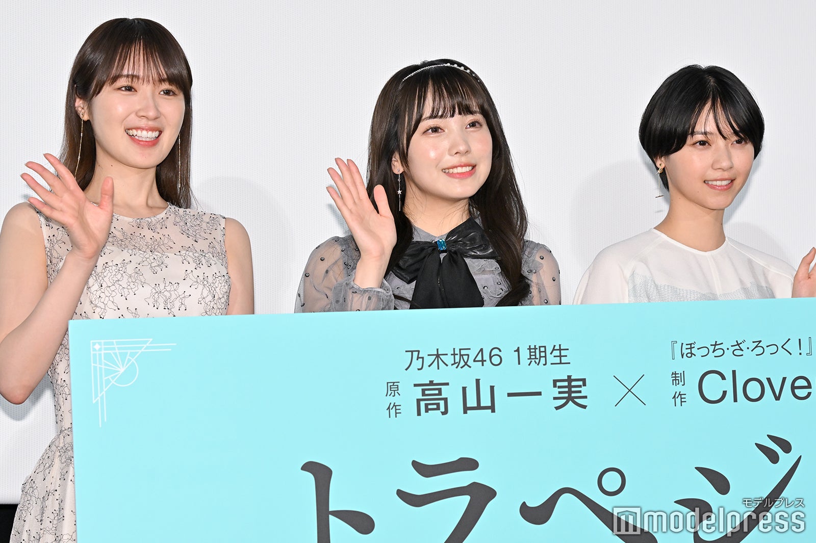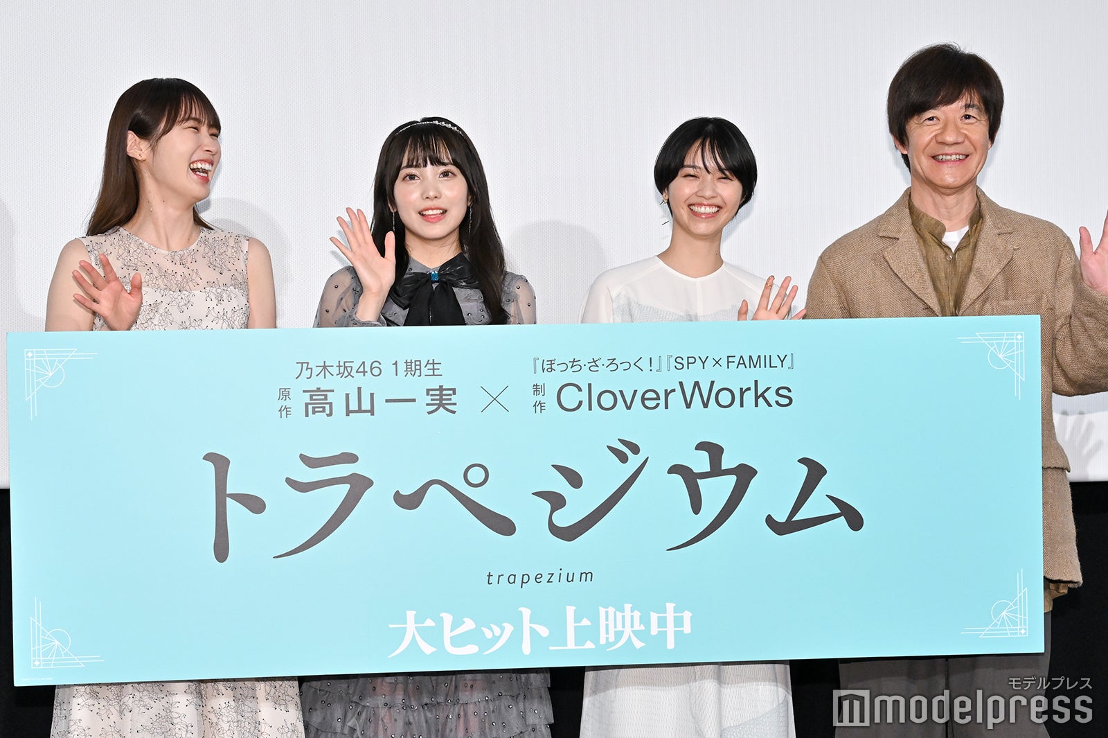 そして、公開から1週間が経った心境を聞かれた高山は「まずは舞台挨拶を3回もさせていただいているので、みなさんとお会いできる機会があるのがすごく嬉しいなと思います。小説を書いていなかったらこういう場がなかったと思うと、書いてよかったなって思います」と声を弾ませ、「感想を見ていると『わかるわ』ってものばかりで、私も見たときに思っていた感想を書いてくださっている方もいて、“この人にいいねしたい”ってたくさんあって(笑)、『トラペジウム』は二等辺三角形という意味で、うまくいかないとか、きれいな話にしたくないというのがあったので、いろんなご意見をいただけるのが『トラペジウム』のタイトルと繋がっていて、私はすごく嬉しいなって思います。どのご意見も正解ですし、高山一実の感想ではなくて作品の感想を見るのも初めてのことなので、ありがたいなと思っています」と感慨深げに語った。