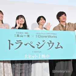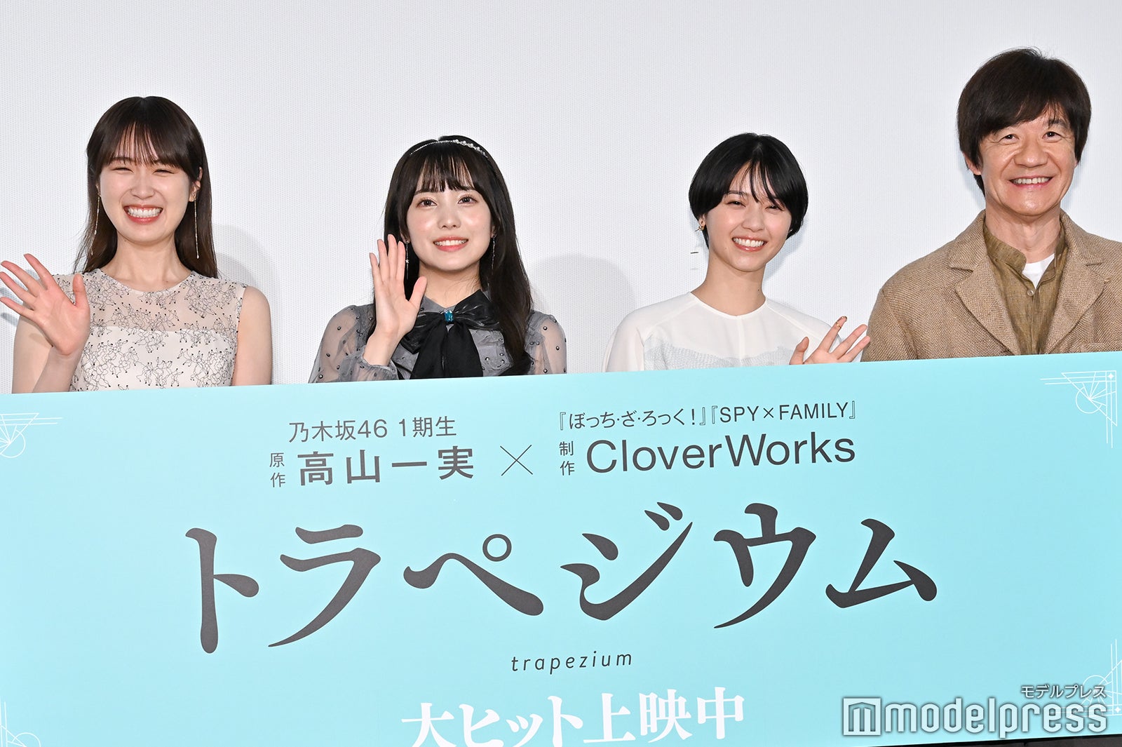 元乃木坂46でタレントの高山一実と女優の西野七瀬が18日、都内で行われたアニメーション映画『トラペジウム』の公開御礼舞台挨拶に、声優の結川あさき、お笑いコンビ・ウッチャンナンチャンの内村光良とともに登壇。作品への思いを語った。
