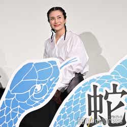 女優の柴咲コウが20日、都内で行われた自身が主演を務める映画「蛇の道」(6月14日公開)の完成披露試写会舞台挨拶に、西島秀俊、⻘木崇高、黒沢清監督とともに出席。撮影秘話を明かした。