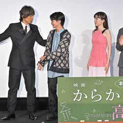 女優の永野芽郁が31日、都内で開催され映画『からかい上手の高木さん』(漫画:山本崇一朗)初日舞台挨拶に高橋文哉、江口洋介、白鳥玉季、齋藤潤、今泉力哉監督とともに出席。共演者からもらったプレゼントを披露した。